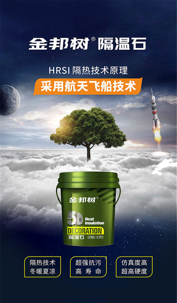 金邦樹真石漆/巖片漆/質(zhì)感漆采用航天飛船技術(shù)(HRSI)隔熱技術(shù)原理,具有超強(qiáng)隔熱效果,給家居環(huán)境帶來了冬暖夏涼的非凡體驗,表面溫差相隔10-15℃,節(jié)能排減,抗紫外線,防風(fēng)化,有效減少用電量,并配合進(jìn)口聚合物丙烯乳液基料、天然大理石骨料、巖片、助劑等材料制成仿大理石紋路喝色彩。
