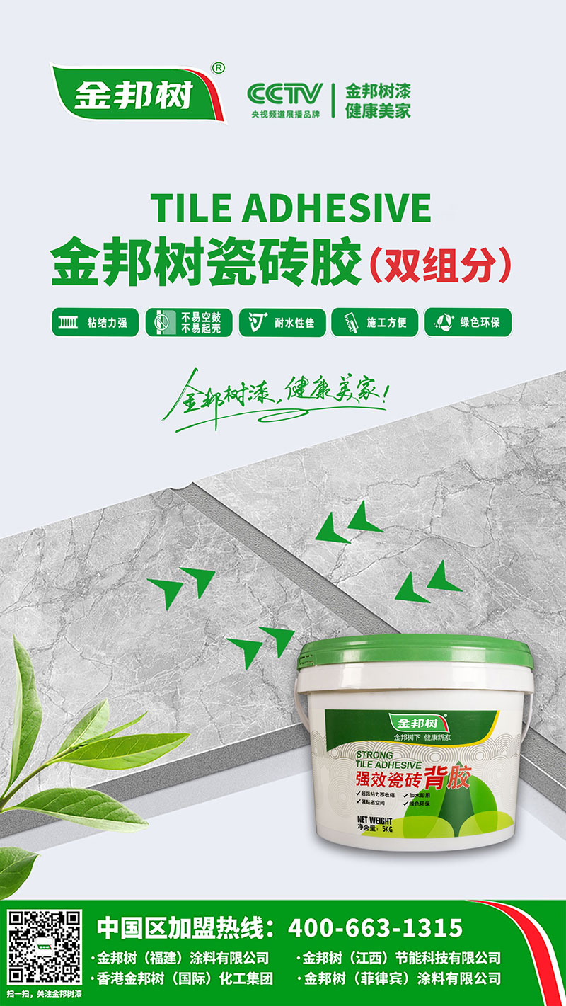 金邦樹瓷磚膠(雙組分)適用范圍:貼磁磚,粘結(jié)力強(qiáng).不易空鼓.不易起殼.耐水性佳.施工方便.綠色環(huán)保。
